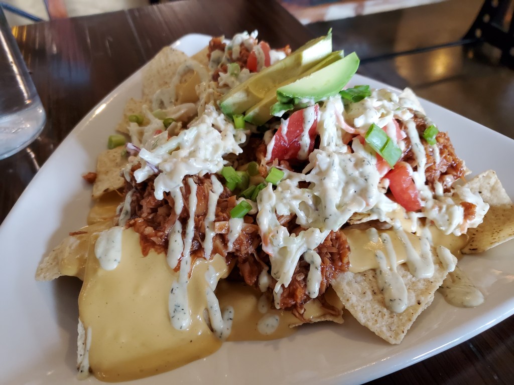 The real star of the meal? THE NACHOS. Holy wow. I am not a jackfruit fan at all. But it was prepped perfectly, and whatever sauce they use it purely magic and delish. This was possibly the best vegan nacho plate I have ever had.
