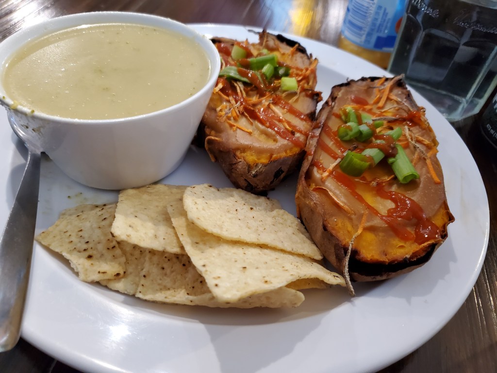 Kristin seemed to like the Thai sweet potato, with the peanut sauce and a side of broccoli cheese soup (which she raved about).