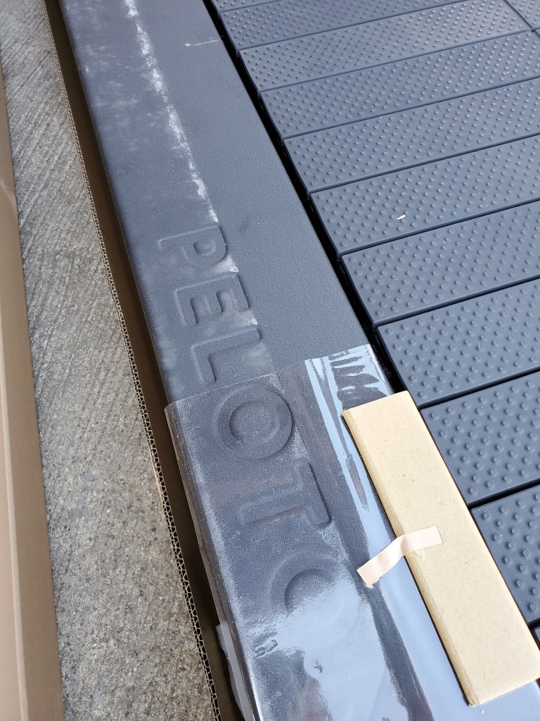 They opened the base packaging, and the deck plates along side the Tread were badly scratched and marked up from vibrartions and the packaging. In some spots the power coat was rubbed off pretty deep. So I had two options – refuse delivery (and wait God knows how long for a replacement), or accept delivery, document everything, and try to work it out with Peloton after the fact. I went with the latter, so I would at least be able to get running.